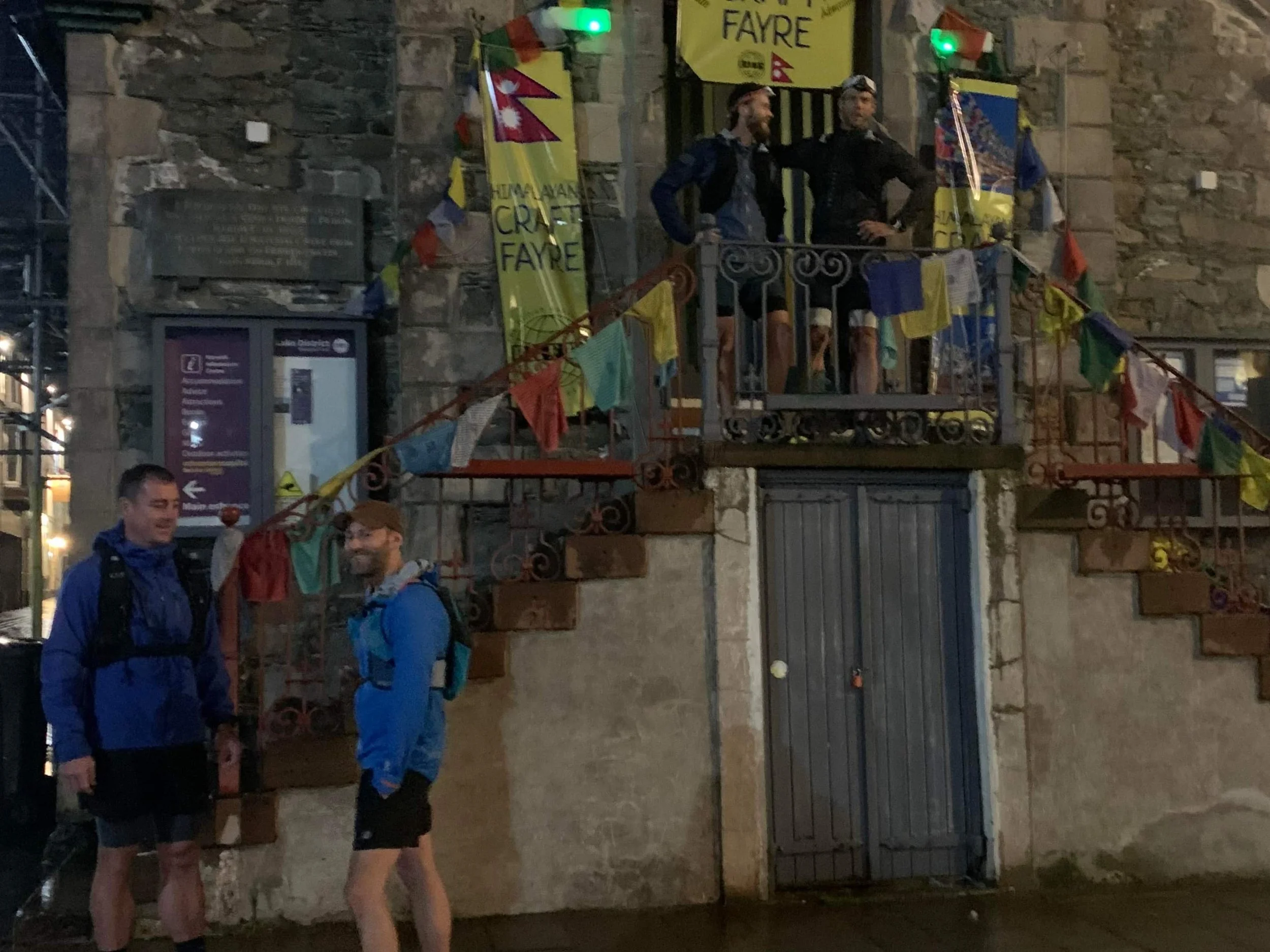 Moot Hall Keswick. Nog 8 minuten vooraleer we vertrekken. Ollie en Craig hebben de vroege shift. Het eerste deel van de route tot Threlkeld, ook wel de 'Leg 1' genoemd, is bijna 20 kilometer lang en telt 1562 hoogtemeters. De sfeer is ontspannen, de regen wat geminderd. Het is geen wedstrijd, we kunnen vertrekken wanneer we willen, toch willen we vasthouden aan het schema dat we zelf vooropgesteld hebben. Ons doel is de ronde uit te lopen in 22,5 uur. Dit geeft toch een beetje extra ruimte en maakt de gemiddelde snelheid niet te verschroeiend.